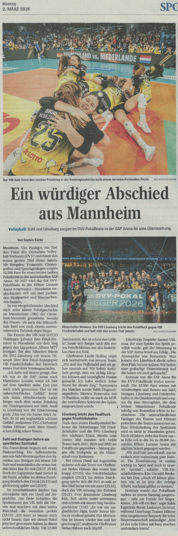 Die Atmosphäre in der Halle war einfach großartig, und durch euch wurde das Spiel zu einem unvergesslichen Erlebnis!