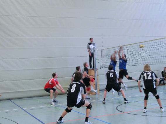 Saft-, kraft-, erfolg- und ratlos, so oder so ähnlich war das Spiel gegen die zweite Mannschaft aus Liedolsheim zu bezeichnen. Trotz einer Sollstärke von 10 Mann, dem Einsatz von "Jungspund" Nico und dem Aussetzen eines Kasten Biers auf einen Sieg, konnten die Old-Stars dem Spiel keine siegreiche Richtung geben, so dass etwas Ratlosigkeit bei den sonst so beredten alten Haudegen ob der fünften Niederlage in Folge bestand. Was hatte sich seit den Siegen des letzten Jahres geändert und wie kann man wieder den Schalter herumlegen, um künftig mit einem Siegerlächeln die letzten drei Spiele der Runde verlassen zu können ? Gut war wieder einmal das Essen nach dem Spiel in der Vereinsgaststätte der Fußballer aus Liedolsheim und man ist schon gespannt, ob Feudenheim gleichwertig kulinarisches den verwöhnten Leckermäulern der Old-Stars zu bieten hat. (NS) Bericht Jugendspieltag U 16 Am Samstagmorgen um 8:30 Uhr ging es los zur Jugendmeisterschaft U16 nach Helmstadt. Da am Freitagabend der SSC Karlsruhe absagte traten nur 3 Mannschaften an. Als wir in Helmstadt ankamen sahen wir, dass Helmstadt nur zu fünft war. Da Durlach nur außer Konkurrenz spielte, waren wir vorzeitig Turniersieger und gewannen somit den Pokal. Der Veranstalter kam auf die Idee noch ein zweites Turnier zu veranstalten. Also spielten wir im 1. Spiel gegen Helmstadt. Den ersten Satz verloren wir knapp mit 23:25. Doch im zweiten Satz gewannen wir mit 25:23. Den darauf folgenden Tiebreak verloren wir knapp mit 13:15. Dazu muss man sagen, dass die Mannschaft sich nach einem 7:0 Rückstand wieder ran kämpfte. Trainer Simon und Co-Trainer Frank waren enttäuscht, genauso wie die Mannschaft. Doch dann hakten wir das Spiel ab und gewannen deutlich mit 2:0 gegen Durlach. Im ersten Satz gewannen wir mit 25:7 und den zweiten Satz mit 25:12. Das Trainerteam war relativ zufrieden mit uns. Im letzten Spiel des Turniers mussten wir das Schiedsgericht stellen. Helmstadt gewann deutlich gegen Durlach. Somit wurden wir zweiter. Doch mit Helmstadt haben wir noch eine Rechnung offen. (JS) |