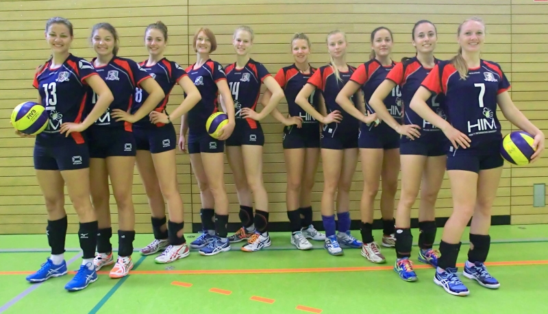 Hintere Reihe: Franziska Schief, Isabel Lehenmeier, Dana Durzova, Frederike Unverfehrt, Katharina Unverfehrt, Eva Holtkamp, Vera Dölger, Trainer Bertram Beierlein